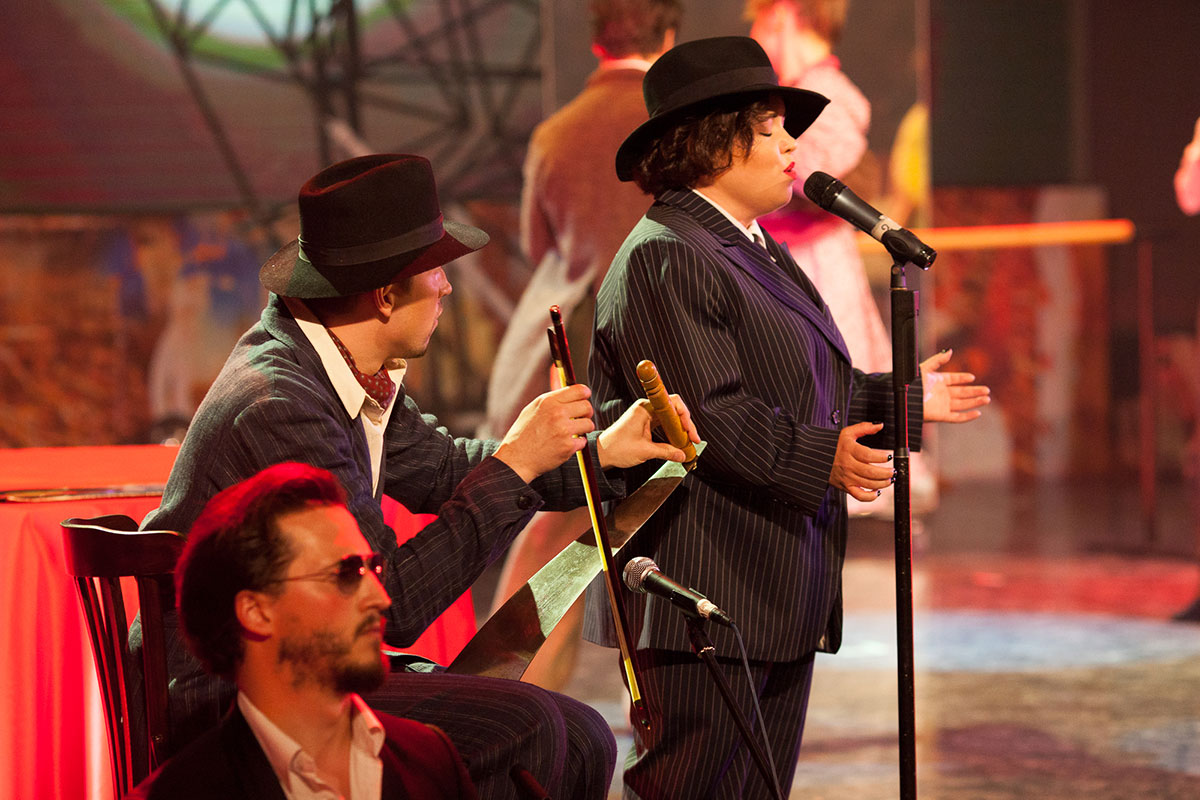 Феликс Михайлов, знакомый как постановщик самый рейтинговый телепрограммм («Звёзды на льду», «Ледниковый период», «Цирк со звездами», «Новый Год на Первом») и церемоний (Московский кинофестиваль, Чемпионата мира по футболу FIFA-2018 в России) всегда очень точно подбирает и музыкальный, и литературный материал. В этот раз, например, на сцене звучат фрагменты книги «Мужчина из розового кафе» классика аргентинской литературы, поэта и прозаика Хорхе Борхеса.