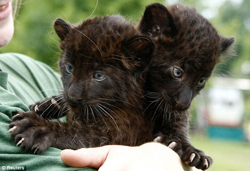 Сотрудники Берлинского зоопарка впервые показали посетителям и журналистам детёнышей чёрной пантеры, родившихся в конце апреля.