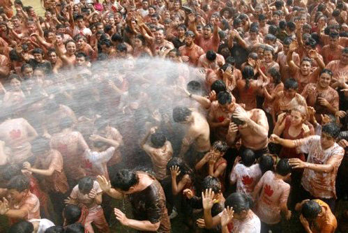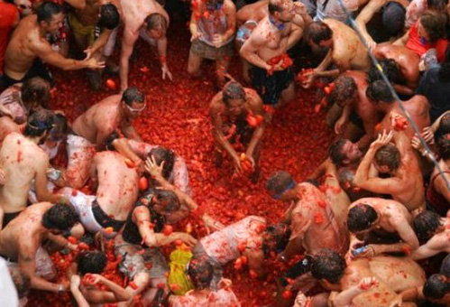 По окончании сражения - примерно к четырем часам дня - участников мероприятия поливают из шлангов. Ну а вечером проходят шумные народные гуляния: уличные музыканты и шуты устраивают веселые представления, гостей «Томатины» угощают ароматным крем-супом из помидоров с кусочками свинины, только что испеченными кукурузными лепешками арепа и «вино тинто» (красное вино, смешанное с содовой и лаймовым соком).