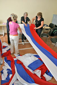 Создатели флага-гиганта уже подали заявку в Книгу рекордов России и надеются - с полным на это правом - что их достижение оценят. До этого самым длинным считался триколор, сшитый в Новосибирске. Но он был вдвое короче петербургского - всего 450 метров. 5 сентября рекордсмена покажут публике - его растянут на стадионе «Петровский» во время отборочного матча чемпионата мира по футболу между сборными России и Лихтенштейна.