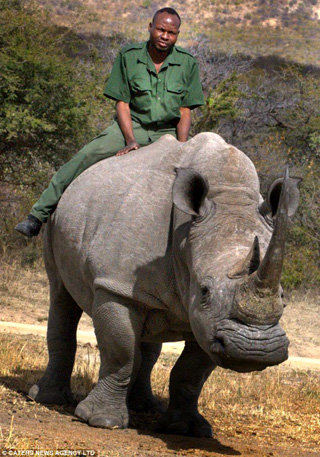 - Когда Джеймс сказал мне, что собирается прокатиться верхом на Деннисе, я не поверил своим ушам, - вспоминает управляющий центром Колин Патрик, - Носороги – очень агрессивные животные. Всякого, кто покушается на его территорию или на него самого, зверь пытается забить насмерть. Однако наш Деннис покорно подставляет Джеймсу спину и даже начал понимать, когда ему нужно повернуть направо или налево – в зависимости от того, по какому боку шлепает ногой всадник. Только не думайте, что Угрозой зверя прозвали просто так. Когда Джеймса нет рядом, носорог врывается на территорию центра, чтобы своровать корм. И по дороге непременно оставляет рогом отметины на автомобилях и зданиях – может, граффити рисовать пытается.