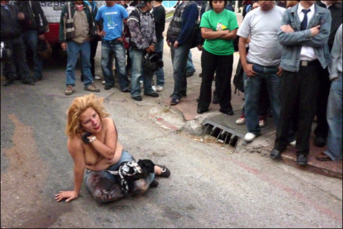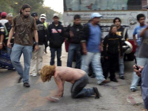 Жители Центральноамериканской республики Гватемала, которую в основном населяют метисы и индейцы, жестоко расправляются с преступниками. Не дожидаясь приезда полиции они частенько устраивают негодяям «суд Линча» прямо на улице. Подобным образом на днях расправились с женщиной, которая была поймана за воровство в автобусе.