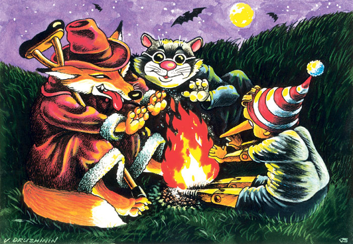 Б: Лиса Алиса и кот Базилио - парочка плутов и бродяжек, не замеченных в серьезном членовредительстве. Готовы обдурить и помучить (подвесили Буратино за ноги), но никак не убить.