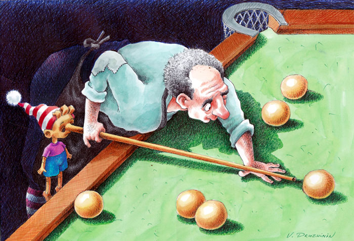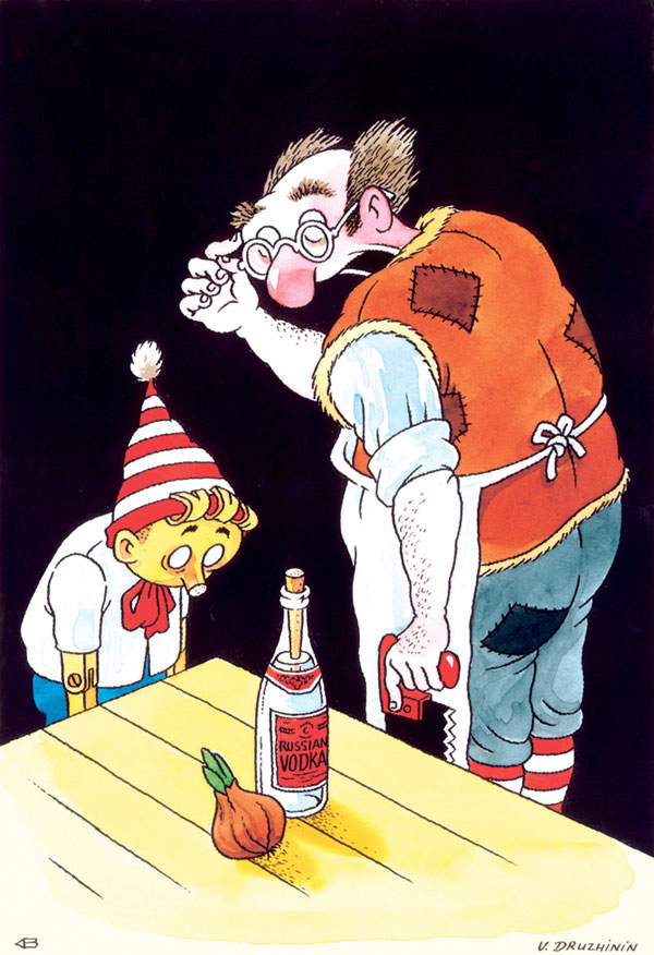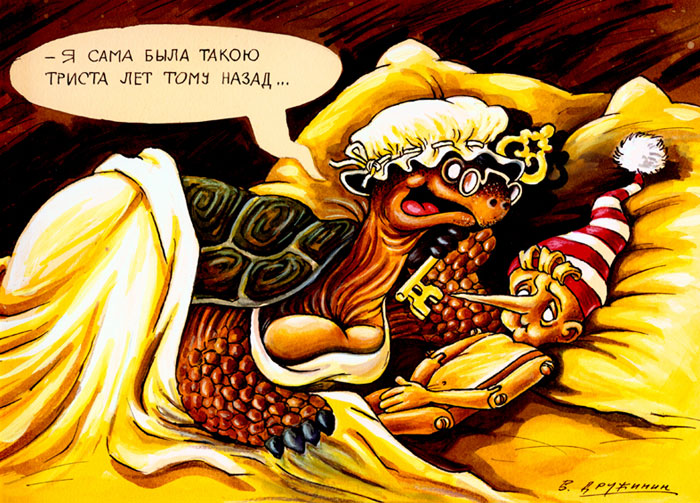 Буратино, пожалуй, чаще других сказочных героев вдохновляет художников: они придумывают собственные сюжеты, представляя деревянного мальчика в разных, порой нелепых или неловких ситуациях. В архиве нашего любимого карикатуриста Валентина Дружинина тоже нашлось множество забавных сюжетов.