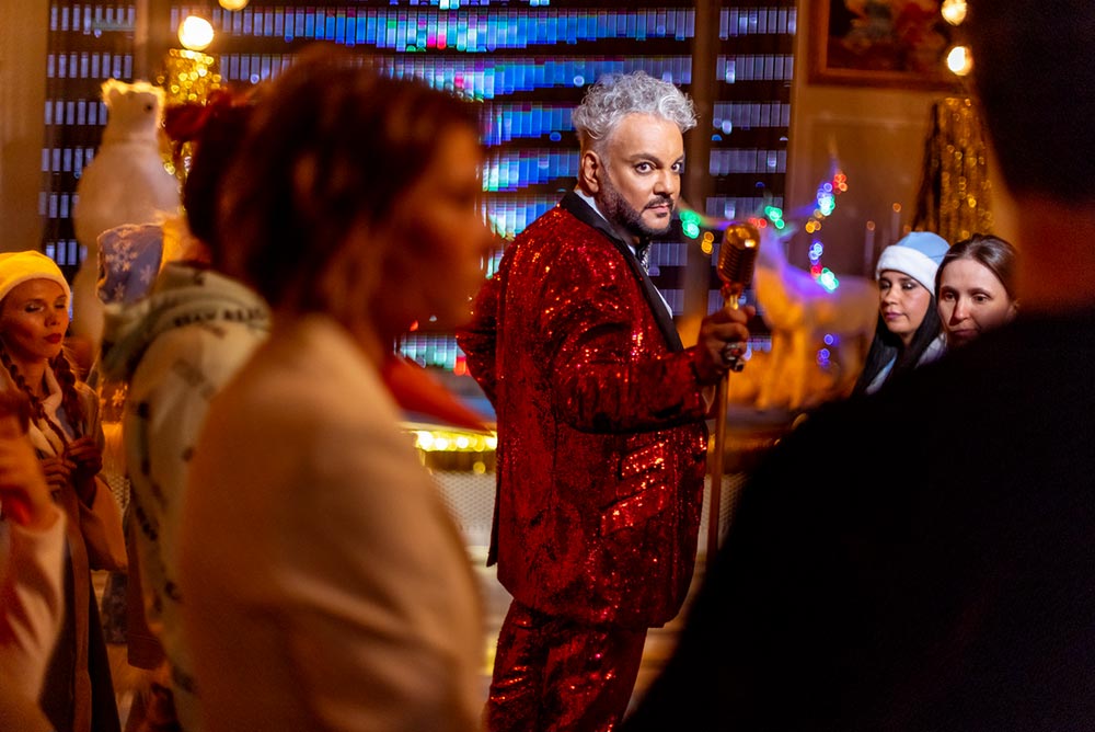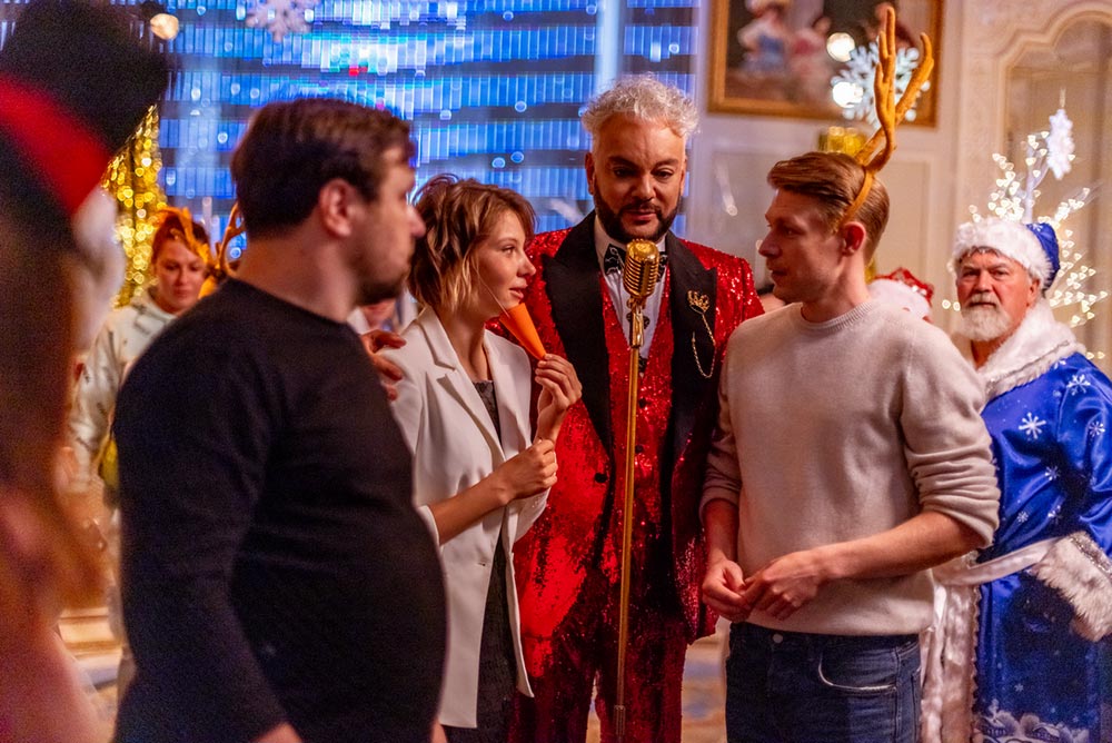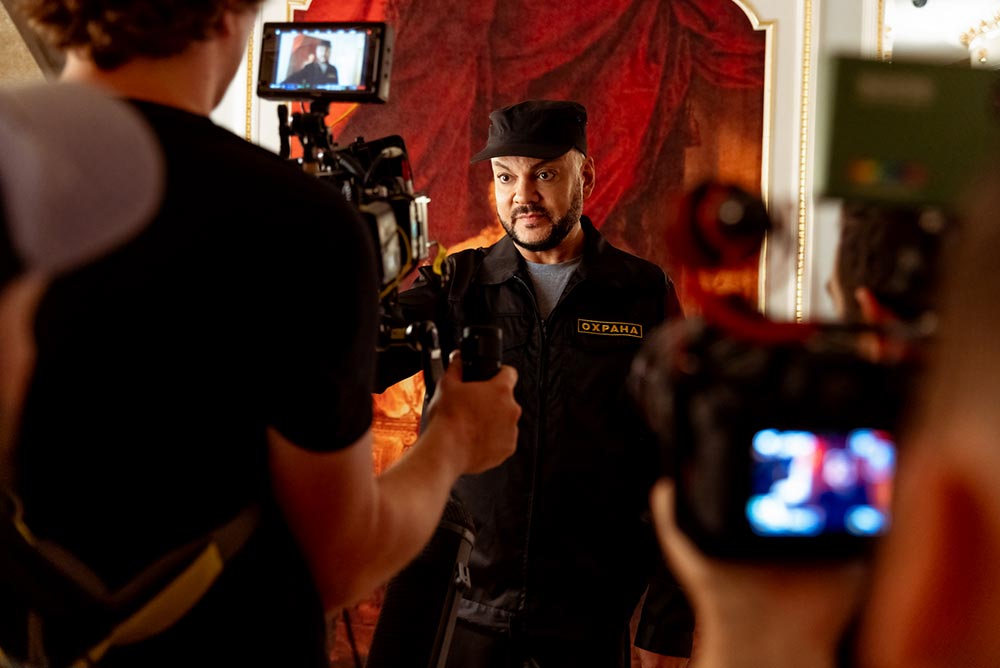 Если Ольга, по сути, сыграла сама себя, то у Филиппа Киркорова — все совершенно иначе. Ему досталась роль... сотрудника ЧОПа, удивительно похожего на Филиппа Киркорова. Певец признается, что ему нравится играть «контрастные» роли, и он не боится появляться в образах, отличных от своего.