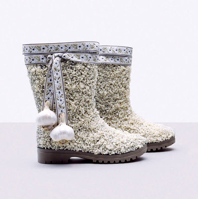 Сумки из ежевики, часики-киви, туфли-баклажаны, зонтик из салата, рыбные пояса… Невозможно поспорить с тем, что модели обуви, аксессуаров, головных уборов и украшений получились более чем аппетитными во всех смыслах этого слова. И если бы они не были фотографиями съедобных аксессуаров и обуви для кулинарной книги итальянца Фулвио Бонавиа под названием «Важность вкуса», то вполне могли стать яркой деталью гардероба.