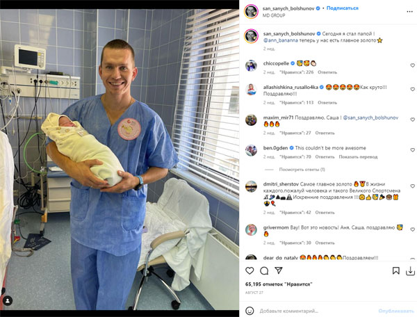 27 августа у трехкратного олимпийского чемпиона по лыжным гонкам Александра Большунова и его очаровательной супруги, тоже лыжницы Анны Жеребятьевой, родился первенец - дочь Ева. А уже 9 сентября счастливый отец приступил в Тюмени к тренировкам в составе сборной.