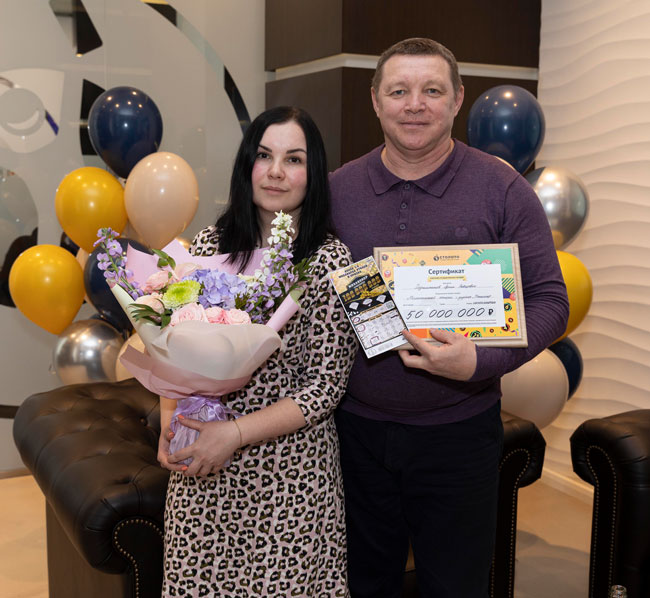 «В воскресенье левая ладонь чешется к финансовым успехам. Я подумал, что можно смело купить лотерейный билетик на удачу. Мы как раз ходили с Кристиной в магазин за продуктами и на обратной дороге остановились у торговой точки «Столото». Продавец предложила приобрести билет моментальной лотереи с дизайном «Миллионер». До того момента мы в ней еще не участвовали. И как было не купить билетик, если, по словам продавца, в этот день один из ее клиентов выиграл именно в эту лотерею 20 000 рублей. Билет стоил 500 рублей, и мы решили взять один из середины пачки. Прямо на месте начали стирать монеткой защитный слой на билете и узнали, что выиграли 50 миллионов! Мы благодарны сотруднице «Столото» за рекомендацию. Если бы она не обратила наше внимание на эту лотерею, мы бы не стали миллионерами, — вспоминают победители.