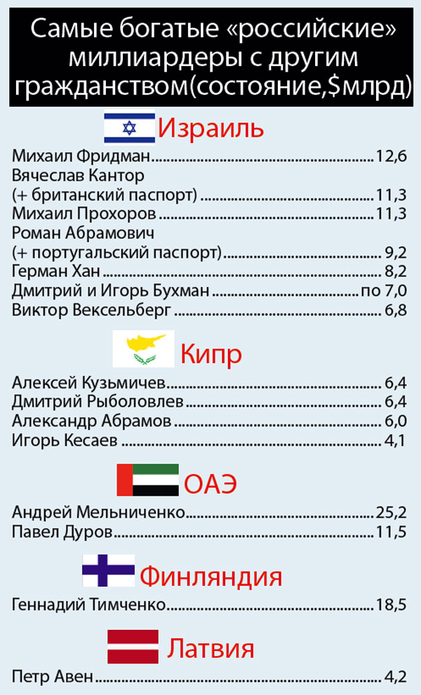 До этого вышли из российского гражданства еще пять человек из списка Forbes (состояние/гражданство):