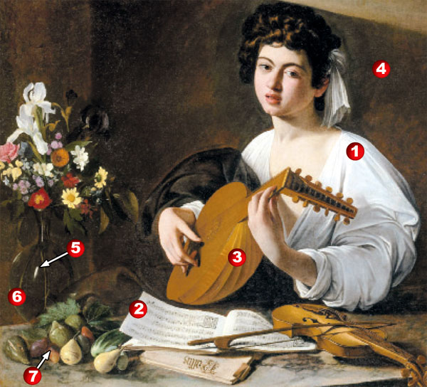 3. Потрескавшаяся лютня - метафора любви, которая терпит неудачу. Лютня и скрипка в эпоху Караваджо - мужские инструменты.