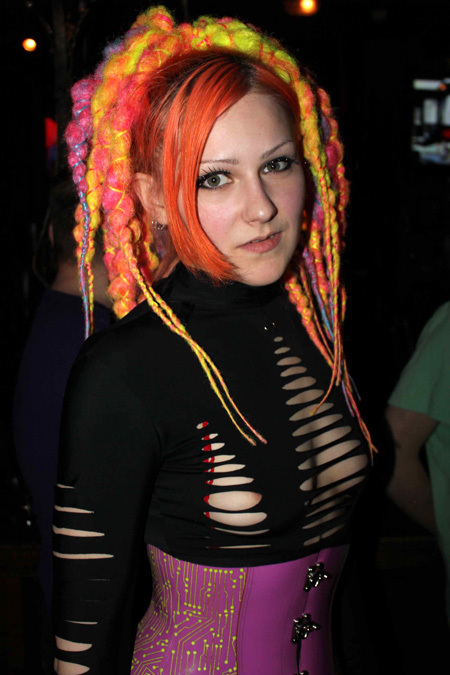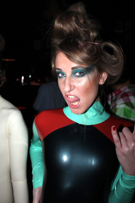 Кстати, фейс-контроль на входе в клуб был довольно лоялен, поэтому приходить в фетиш-одежде было совершенно не обязательно. Но большинство, дабы получить максимальное наслаждение от вечера, все же надели латексные костюмы. При отсутствии последнего, но наличии большого желания, Агна предоставляла желающим свои работы. Мы решили пообщаться с дизайнером, и расспросить подробнее, что же это такое, фетиш-движение?