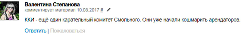Малые предприниматели уже бьют тревогу, опасаясь, что на них попросту начнётся охота. «ККИ - ещё один карательный комитет Смольного. Они уже начали кошмарить арендаторов», - комментирует происходящее один из частников.