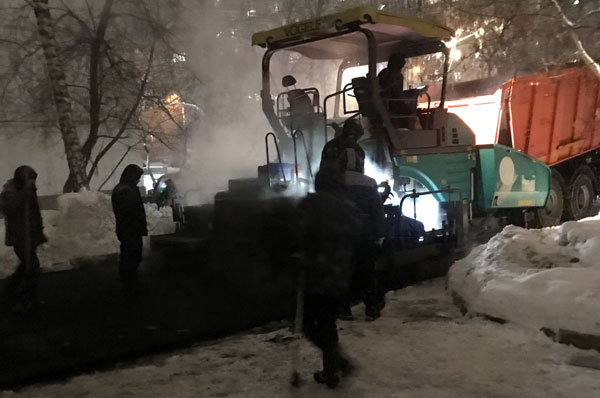 Жители многоэтажки в Бутырском районе глазам не поверили, когда к ним во двор зарулил грузовик с горой дымящегося асфальта. Перед ним двигались мини-трактор-снегоуборщик, дорожный каток и десяток смуглых ребят с лопатами.