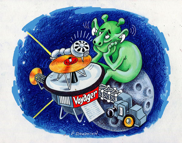 В 1977-м на корпусе космических аппаратов «Вояджер-1» и «Вояджер-2» в межгалактическое пространство отправили диски на 55 языках, фото и звуки природы, а также запись музыки Баха, Бетховена, Моцарта, Стравинского и других композиторов. Оба аппарата находятся за пределами Солнечной системы в 20 млрд км от Земли.