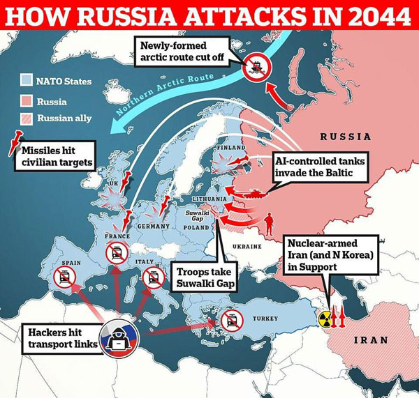 По мнению обкуренных британских журналистов, в ближайшие лет 20 Россия непременно нападет на Европу. Вначале, мол, ужасные русские хакеры вырубят им весь транспорт, а потом полетят ракеты - и почему-то именно по Прибалтике, Финляндии, Англии, Франции и Германии.