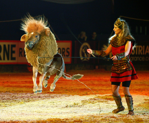 Вообще-то Лум а- настоящая лошадка, хоть и маленькая. Но благодаря редкой окраске, густой гриве и смекалке своей хозяйки она превратилась в африканского хищника. Лума выполняет все трюки, которые в цирке обычно делают представители семейства кошачьих: позирует на тумбе, прыгает через кольцо и даже пытается рычать. Вот только мясо не ест – всё-таки она лошадь! Сочному бифштексу Лума предпочитает свежую траву и сладкую морковку.