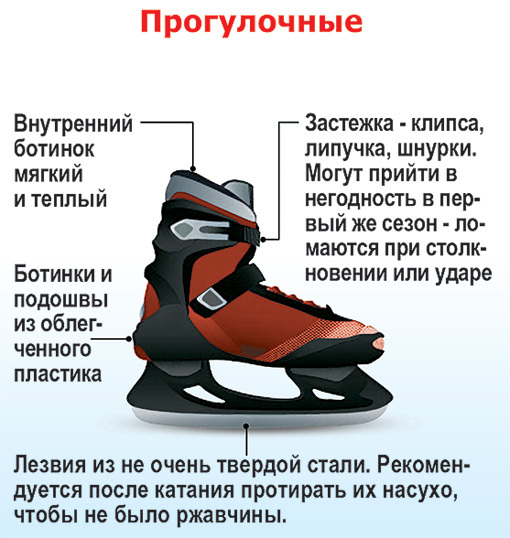 - Если планируете выйти на лед пару раз за сезон, советую не тратиться на дорогую спортивную экипировку, - говорит менеджер магазина спорттоваров Андрей Исаев. - Но учтите, что разношенные коньки из пункта проката не сядут по ноге. К тому же они не очень гигиеничны. Теперь определимся: фигурные, прогулочные или хоккейные коньки нам больше подойдут. Основные характеристики по каждой группе приведены ниже.
