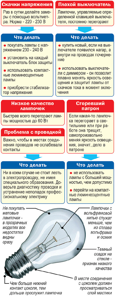 Срок годности ламп накаливания - тысяча часов, но они летят, не отработав и сотни