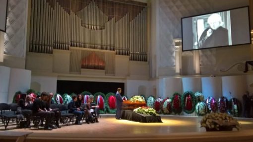 В Московском концертном зале имени Чайковского проходит церемония прощания с оперным певцом. Проводить известного «баритона» в последний путь пришли сотни поклонников, которые выстроились в огромную очередь к гробу прославленного исполнителя.