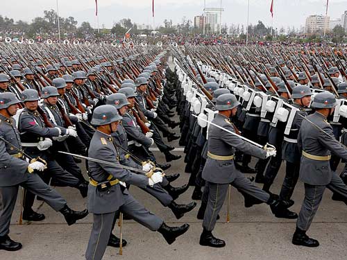 Военные парады, призванные демонстрировать силу и мощь армии, проходят в разных странах. И хотя во многом эти торжественные мероприятия происходят по типичному сценарию, национальный колорит вносит свою лепту. Одни из наиболее зрелищных армейских смотров можно увидеть в Чили и Индии, где ежегодные военные парады – праздники национального масштаба.