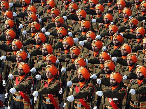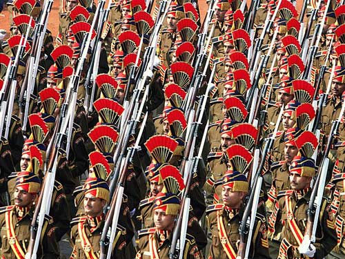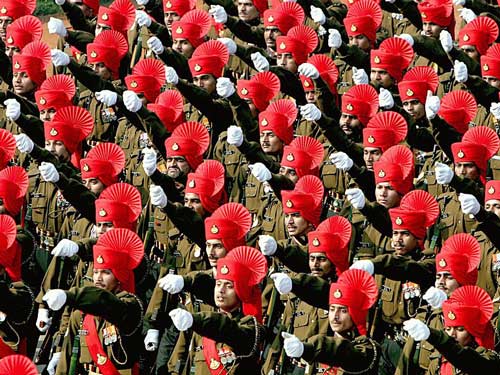 На главной улице столицы военные не просто проходят маршем, они соревнуются в маршировке. Парадный шаг индийских солдат - впечатляющее зрелище. Резкость и даже ярость, с которой они движутся, доведены до предела, особенно поражают взмахи ног - чуть ли не выше головы. Так высоко ногу не тянет ни одна армия мира. Пехотинцы стараются изо всех сил: потом лучшим будет вручаться приз.