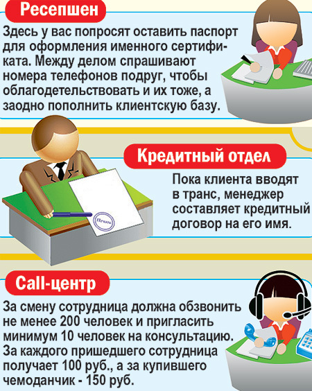 Оксана: «Я проработала две недели. Продаж у меня не было. Ну не могла я впихнуть чемодан за 46 тысяч рублей матери-одиночке с доходом в 12 тысяч или бабушке-пенсионерке! Когда я сказала об этом девочкам-косметологам, которые работают там год и более, они ответили: «Не жуй их проблемы. Представь, что на кушетке лежит не клиентка, а твои деньги!»