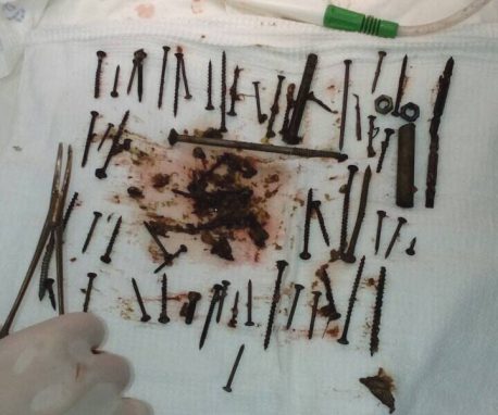 Каково же было удивление медиков, когда во время операции они достали из полости желудка сто пятьдесят два железных предмета, среди которых помимо вышеперечисленных были дверные шпингалеты, отрезки арматуры длиной до пятнадцати сантиметров и серебряная цепочка 925 пробы.