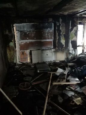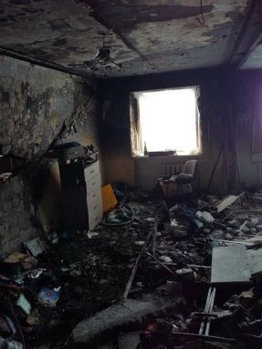 На фотографиях с места происшествия видны ужасающие масштабы последствия страшной трагедии: в квартире не осталось ничего, что напоминало бы о прежней жизни счастливой семьи Бакаевых. Огнем уничтожена вся мебель, бытовая техника и вещи, уцелели только стены, закопченные пожаром.