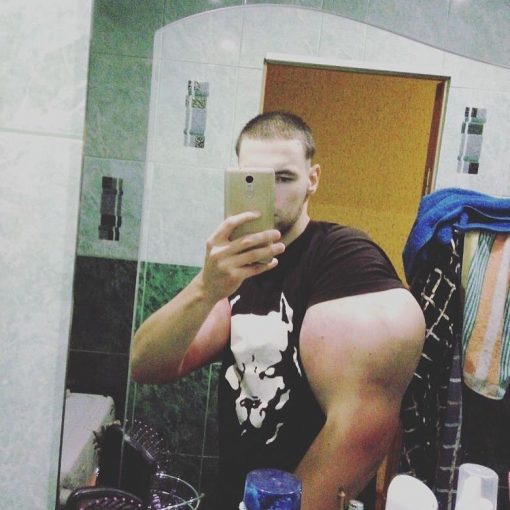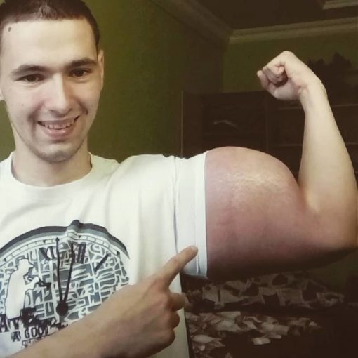 Терешин начал свое преображение в июле прошлого года - с помощью 20-дневного курса уколов синтола он раздул свои руки в объеме на 26 см. Бицепсы молодого человека уже тогда смотрелись неестественно и были непропорциональны остальному телу, но синтоловый качок не собирался останавливаться.