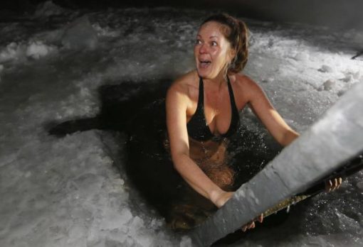 Как россияне окунались в прорубь на Крещение