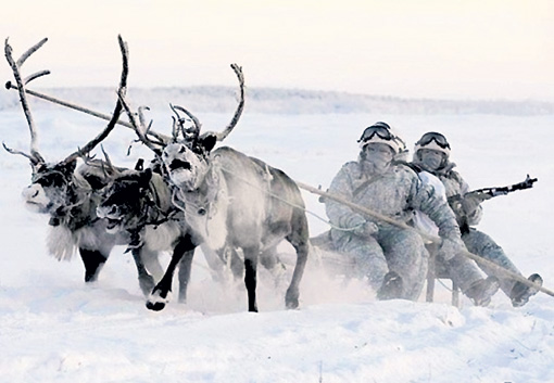 Однако в этой связи захотелось написать про оленей. И вот что. В сложных погодных условиях симпатичные жители тундры и вправду - незаменимая тягловая сила и безотказный вид транспорта. Их достоинства давно оценили военные. Недавно на собачьи и оленьи упряжки, например, пересадили бойцов отдельной арктической разведывательной мотострелковой бригады Северного флота. На тридцатиградусном морозе в оленеводческом хозяйстве у поселка Ловозеро в Мурманской области военнослужащие отрабатывают управление запряженными животными нартами.