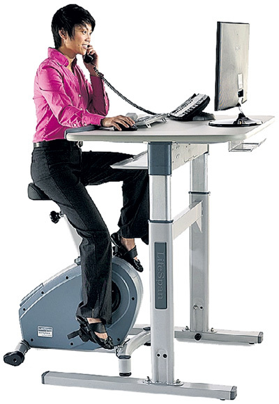 Американские разработчики придумали велотренажер для офисных клерков. Портативное устройство устанавливается под стол, отчего крутить педали можно без отрыва от производства. Важным условием проекта было сохранение приватности: мало кто хочет афишировать свои тренировки на работе.