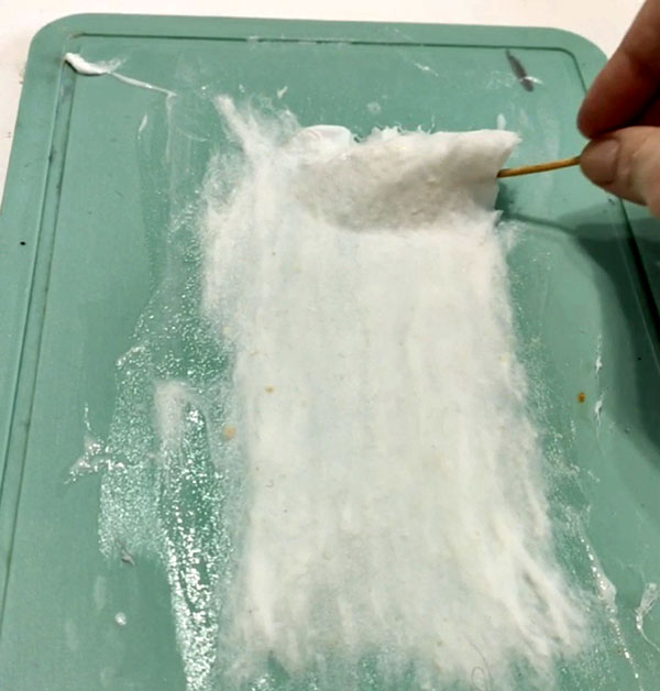 На доске расстилаем ватный пласт, пропитываем клеем. Оборачиваем конструкцию со всех сторон. Высушиваем сутки.