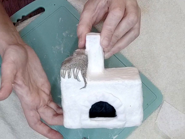 Добавляем кусочек мешковины. Отправляем печку на сушку.