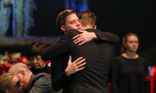 Сотни людей пришли проводить Олега Павловича в последний путь. Гроб с телом покойного артиста разместили на сцене театра. На большом экране показывают самые яркие роли Олега Табакова в кино. Выразить искренние соболезнования семье покойного артиста пришли близкие друзья и коллеги по творческому цеху.
