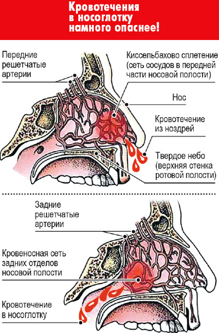 Однако природа гениально создала нам «предохранительный клапан», который может сбросить давление без ужасных последствий. Этот клапан - капилляры в носовой перегородке: они слабее остальных и первыми лопаются при повышенной нагрузке на сосуды.