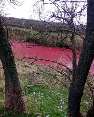 В станице Елизаветинской жители были шокированы, когда на днях увидели необычный цвет для реки. Вода в ней стала алого цвета. Очевидцы разместили фото «явления» в соцсетях. В городском паблике было много комментариев с различными предположениями, почему река приобрела красный цвет.