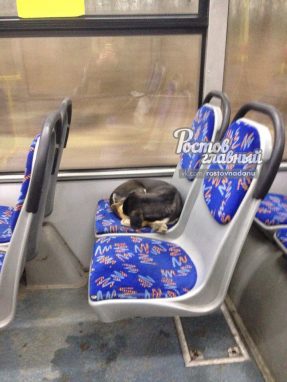 Многие жители Ростова-на-Дону возмутились, увидев фото собаки, спящей в городском транспорте.