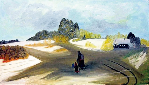 Открыл пожилое дарование коллекционер Владимир Мороз. Гостил у друзей в деревне, зашел к соседке и обомлел: дом был увешан написанными гуашью картинками. Чистыми, наивными и необыкновенно светлыми. Хотел купить все, но бабушка просто отлепила их от стены и отдала даром.