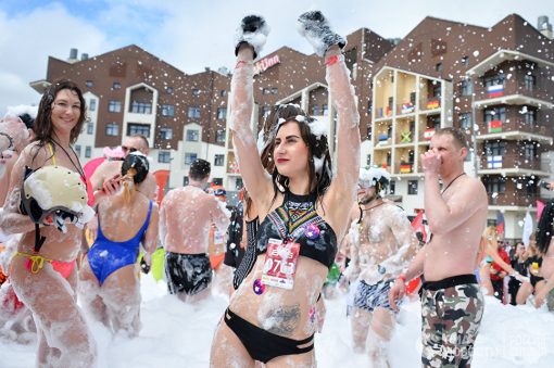 На следующий день карнавала эстафетную палочку перехватили лыжники и сноубордисты в бикини и шортах. Их было 1800 человек. Перед стартом, который находился на высоте 1170 метров, музыкальная группа исполнила композицию. Под ритмичный бит участники начали спуск, который занял целый час, а в завершение состоялась пенная вечеринка на открытом воздухе.