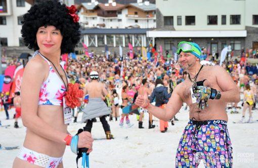 В Сочи лыжники в купальниках претендуют на рекорд Гиннеса