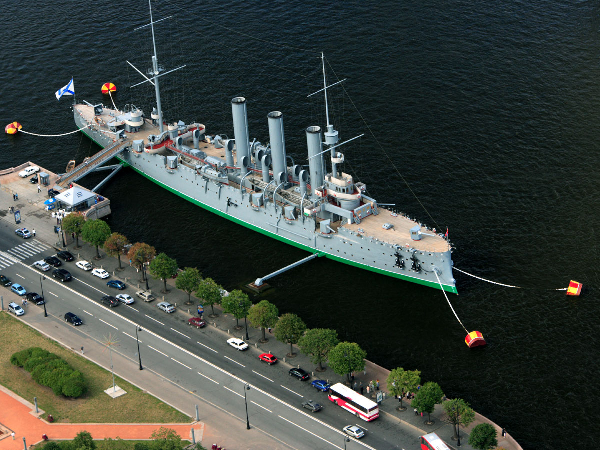 На самом деле от той самой «Авроры» сохранились верх корпуса, боевая рубка, центральный пост, броневая палуба, паровая машина, часть внутренних переборок, одна из паровых машин - около 50 % оригинальных деталей. Орудия - не с этого крейсера, но настоящие, начала ХХ века, их еле нашли. Для корабля, пережившего несколько модернизаций, три войны, революцию и 1990-е, не так уж мало. К тому же других боевых кораблей того периода в России вовсе не осталось.