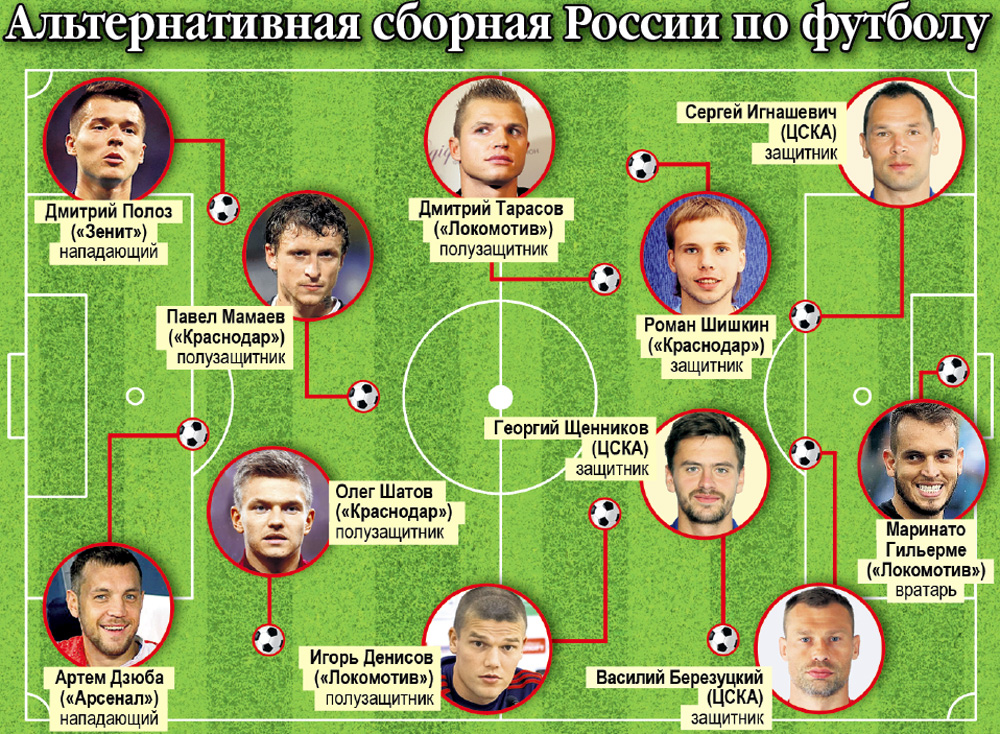 Далеко не факт, что этот состав (см. инфографику) уступит нынешней сборной России. «Отцепленные» Черчесовым футболисты лезли бы из кожи вон, чтобы доказать свою состоятельность. Кстати, по мнению Александра Мостового, четверо игроков - Дзюба, Денисов, Шатов и Полоз - точно не помешали бы нам на чемпионате мира.