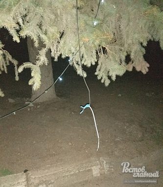 В городском паблике соцсетей появились фотографии елки, обмотанной светящейся гирляндой. Однако смутило жителей Ростова-на-Дону не то, что елка стоит наряженная на улице города в апреле, когда новогодние праздники давно прошли, а то, что на ней висят оголенные провода.
