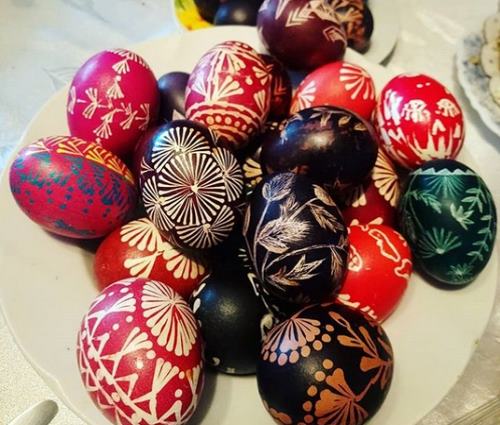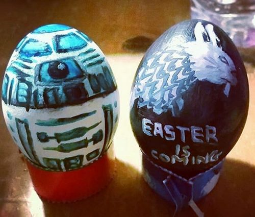Пасхальные яйца с каждым годом выглядят всё более причудливо. Если раньше все они выглядели примерно одинаково (в качестве красителя использовалась обычная луковая шелуха, которую бросали вместе с яйцами в кипящую воду), то теперь люди вручную наносят всевозможные узоры и рисунки на скорлупу. И, конечно, выкладывают фото своих творений в социальные сети. Иногда сюжеты росписи подкидывает сама жизнь.