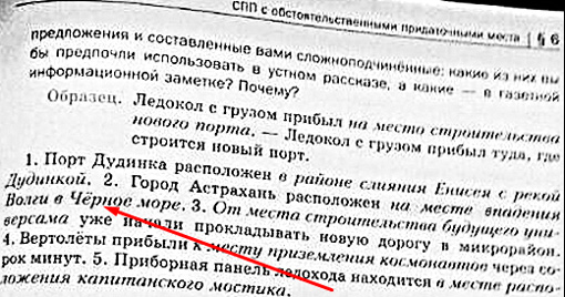 Астраханские школьники опубликовали в социальных сетях фотографию из учебника по русскому языку для девятого класса, в котором указано, что Волга впадает в Чёрное море