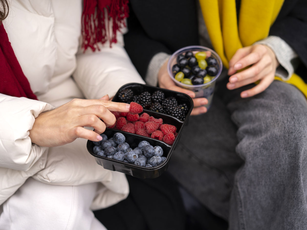 Дневная норма клетчатки - 25 - 30 г, это пять порций фруктов и овощей. Одна порция: крупное яблоко, апельсин, огурец, морковка - на выбор. Или два фрукта поменьше, например, абрикоса. Как вариант - небольшая чашка ягод, пара картофелин, горсть орехов. Лучше сочетать клетчатку обоих типов. Сверх меры ее есть не стоит - чревато вздутием и диареей.