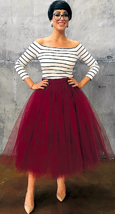 Стилист: Мне кажется, трудно испортить образ в черно-белой гамме, но в данном случае, если бы это была не просто юбка макси, а, к примеру, кюлоты, образ был бы гораздо более свежим - таким динамичным и модным. И очень неправильный выбор обуви. Если вы останавливаетесь на такой длине, но никаких каблуков!