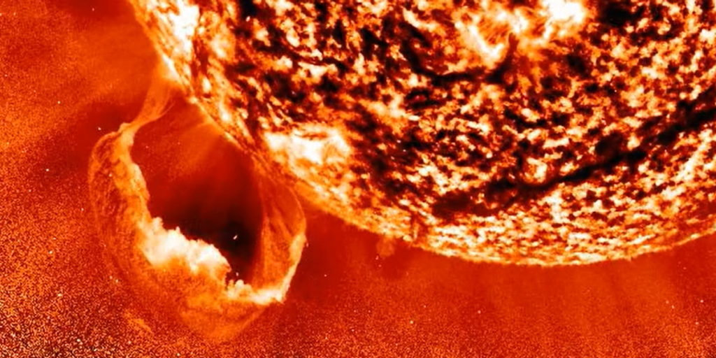 «Структура какого-то совершенно невероятного размера, превысившая в определенный момент размеры Солнца (около 1.5 миллионов километров), начала показывать первые признаки дестабилизации около 7 утра по московскому времени, и к 10 утра полностью оторвалась от звезды. В течение ближайших пары часов в этом месте на поверхность Солнца еще будет падать «огненный» дождь из не сумевших преодолеть гравитацию остатков горячего вещества, но основная масса выброса покинула атмосферу Солнца окончательно, и, пройдя через солнечную систему, в конечном счете, перемешается с межзвездным газом Галактики», - пояснили специалисты ИКИ и ИСЗФ РАН.