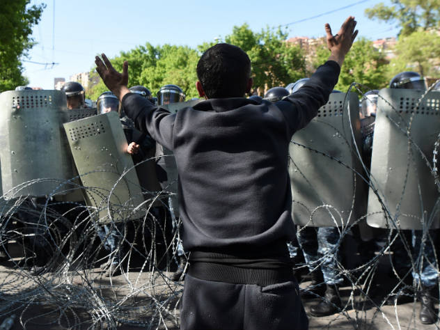 На улицах Еревана начались массовые задержания демонстрантов, перерастающие в драки.